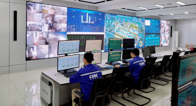 信息賦能,生產(chǎn)與數(shù)字技術(shù)深度融合。建立兩級運營指揮中心,重要產(chǎn)線現(xiàn)場實時監(jiān)控,關(guān)鍵經(jīng)濟指標及時更新;水處理產(chǎn)業(yè)建成船舶配套領(lǐng)域首個智能工廠,風(fēng)電產(chǎn)業(yè)打造成具有行業(yè)特色成型智能制造車間。