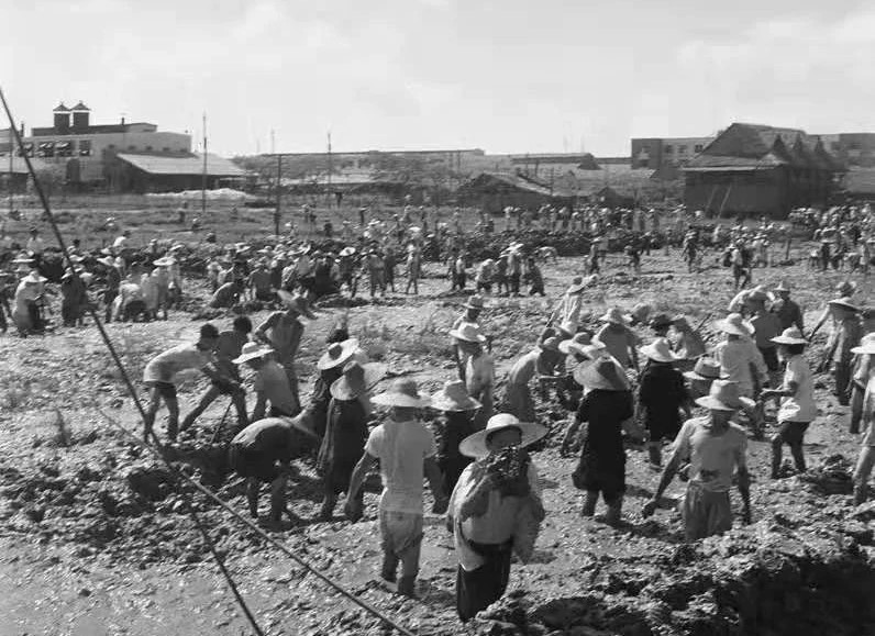 建廠初期工人徒手建設船廠