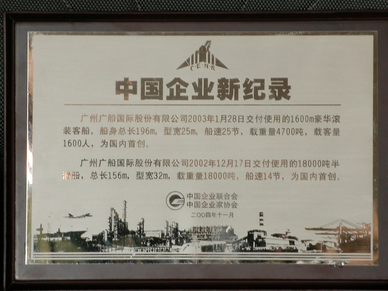 2004年,建造的豪華客滾船和半潛船獲“中國企業新紀錄”