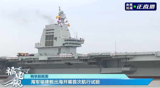 這其實是我國第三艘航空母艦福建艦2024年5月1日從上海江南造船廠碼頭解纜啟航,赴相關海域,開展首次航行試驗的畫面。