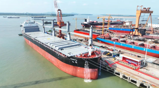 日前,中國船舶集團旗下中船貿易聯合北海造船,為達飛輪船建造的第五艘5500TEU集裝箱船命名交付。