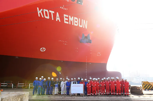 此次出塢的整船是江南造船為新加坡太平船塢(PIL)建造的14000TEU液化天然氣(LNG)雙燃料集裝箱船系列船中的最后一艘(H2788船)。起浮的一艘整船是江南造船建造的Mark Ⅲ薄膜式 17.5萬立方米大型LNG運輸船系列船第三艘。起浮的兩艘半船是江南造船為博亞國際海運建造的14000TEU集裝箱船系列船首艘(H2789船)的艏、艉半船。
