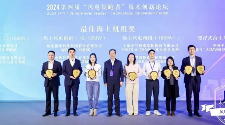 開年即“開跑”,展示新“風(fēng)貌”。1月9日, 2024(第四屆)“風(fēng)電領(lǐng)跑者”技術(shù)創(chuàng)新論壇暨頒獎盛典在北京成功舉行,活動共評選出“風(fēng)電領(lǐng)跑者”最佳陸上機(jī)組獎、最佳海上機(jī)組獎、最佳零部件產(chǎn)品獎、最佳服務(wù)產(chǎn)品獎和年度最佳創(chuàng)新獎五類大獎,中國船舶集團(tuán)旗下中船科技子公司中船海裝H305-25MW海上風(fēng)電機(jī)組、H220-6.XMW陸上風(fēng)電機(jī)組憑借其創(chuàng)新設(shè)計(jì)和優(yōu)異性能分別斬獲了“最佳海上機(jī)組獎”和“最佳陸上機(jī)組獎”。