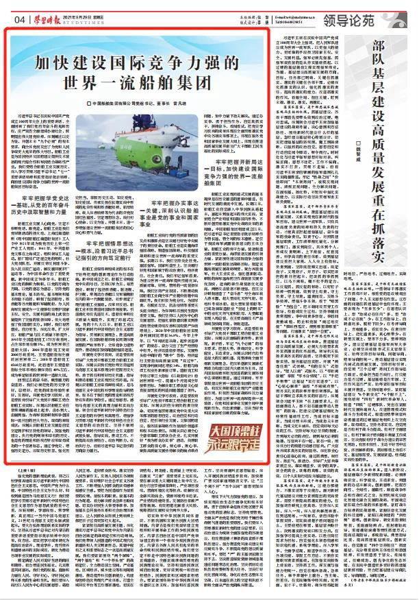 9月29日,《學習時報》刊發中國船舶集團黨組書記、董事長雷凡培署名文章《加快建設國際競爭力強的世界一流船舶集團》,現全文分享如下。