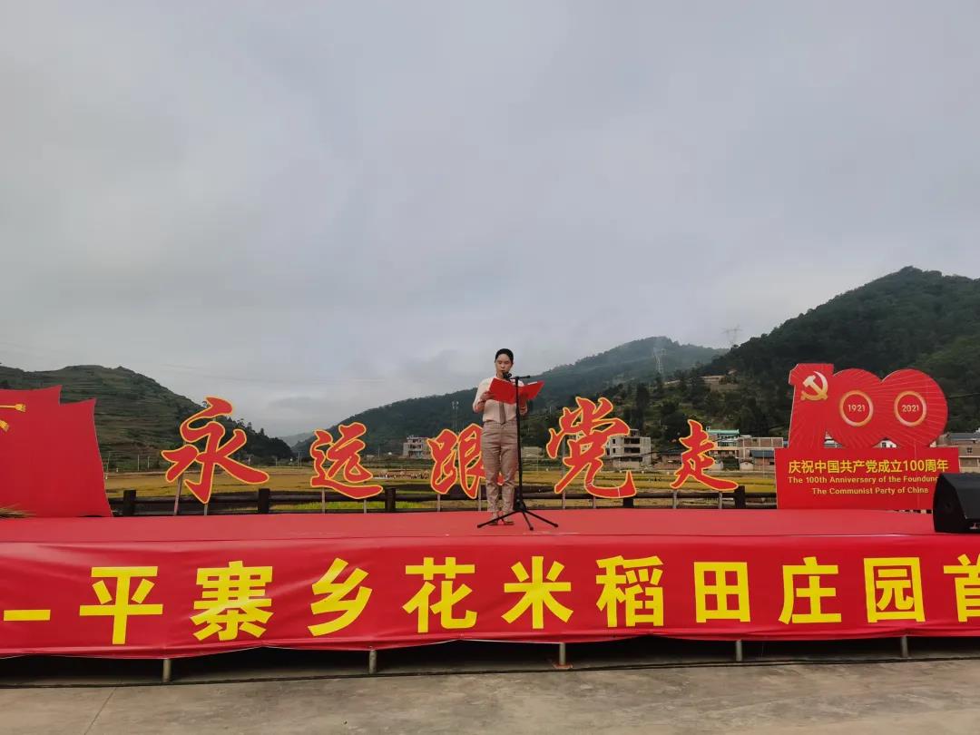 以節(jié)聚勢(shì),以節(jié)聚產(chǎn),以節(jié)聚人,平寨鄉(xiāng)壯族百姓以獨(dú)特的方式,慶祝祖國(guó)生日,分享豐收喜悅,總結(jié)鞏固脫貧攻堅(jiān)成果與鄉(xiāng)村振興有效銜接經(jīng)驗(yàn),探索綠色發(fā)展、質(zhì)量發(fā)展新思路,實(shí)踐對(duì)口幫扶、內(nèi)生動(dòng)力資源增效新方法,構(gòu)建產(chǎn)業(yè)發(fā)展、農(nóng)旅融合鄉(xiāng)村振興新路徑,譜寫(xiě)平寨發(fā)展新篇章。平寨鄉(xiāng)黨委書(shū)記陸華麗在開(kāi)幕式致辭中指出,舉行花米稻田莊園首屆新米節(jié),是平寨鄉(xiāng)“以節(jié)聚勢(shì),以節(jié)聚人,以節(jié)聚產(chǎn)”的重要舉措。近年來(lái),平寨鄉(xiāng)堅(jiān)持黨建引領(lǐng),務(wù)實(shí)創(chuàng)新的工作作風(fēng),各項(xiàng)事業(yè)蓬勃發(fā)展。脫貧攻堅(jiān)勇創(chuàng)佳績(jī),人居環(huán)境不斷改善,產(chǎn)業(yè)生態(tài)綠色發(fā)展,文化事業(yè)生機(jī)勃勃,民族團(tuán)結(jié)碩果累累,為鄉(xiāng)村振興戰(zhàn)略的實(shí)施打下了良好的基礎(chǔ)。