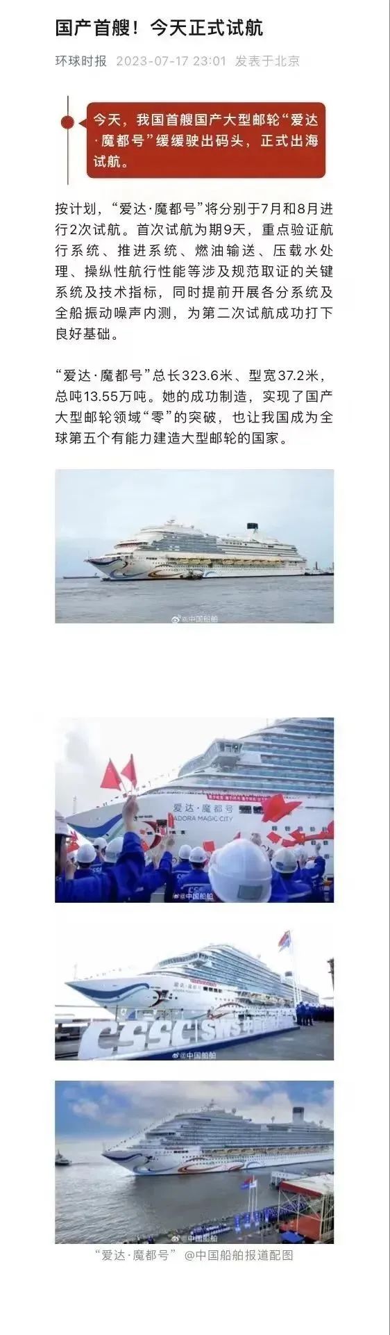 國(guó)產(chǎn)首制大型郵輪試航