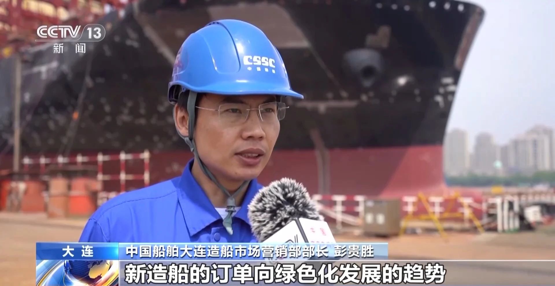 在中國船舶大連造船,船塢里生產(chǎn)的新船大多都已經(jīng)是使用綠色燃料的綠色船舶。