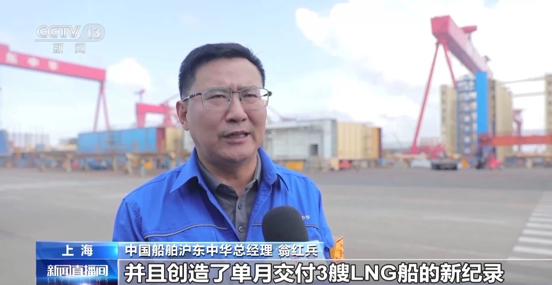 今年9月,在滬東中華造船廠,一個月就交付了3艘LNG船,創(chuàng)造了中國船舶建造史上單月交付的新紀錄。