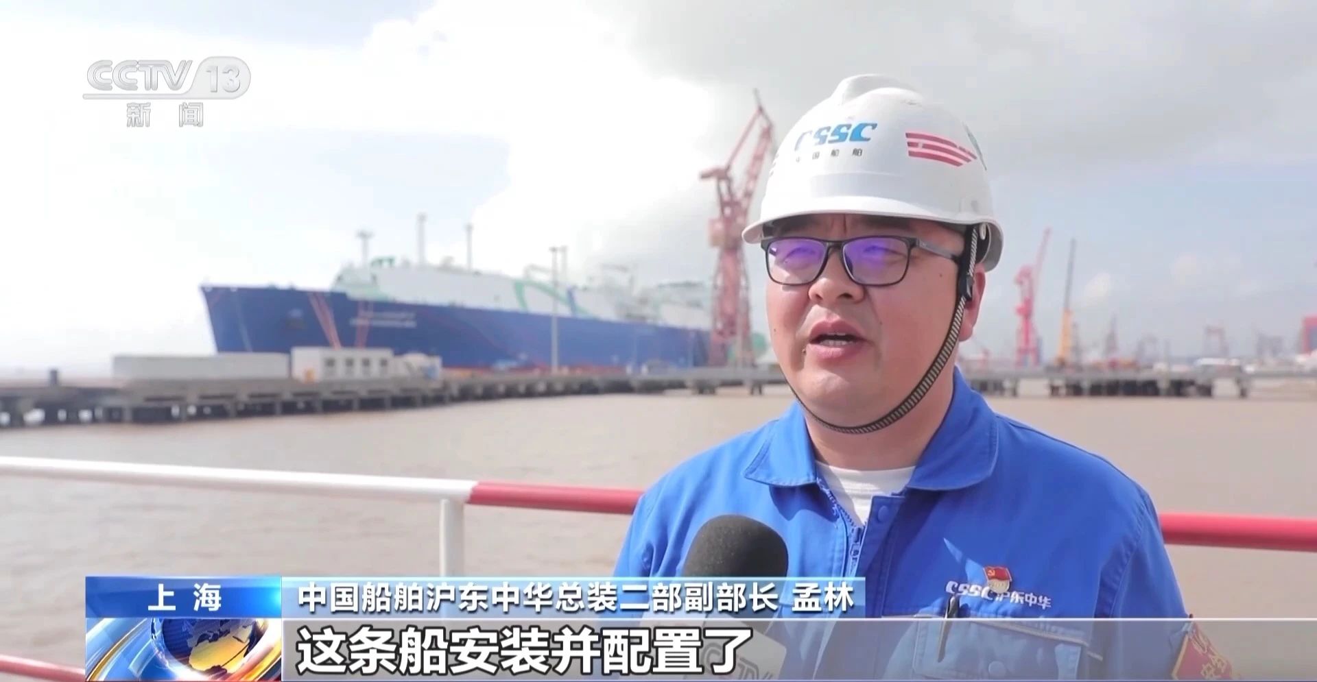 中國船舶滬東中華總裝二部副部長 孟林:這條船安裝并配置了全球首臺套再液化裝置,國內(nèi)自主研發(fā)的廢氣再循環(huán)系統(tǒng),能夠有效地提高能效,也能夠滿足國際上的T3排放標準。